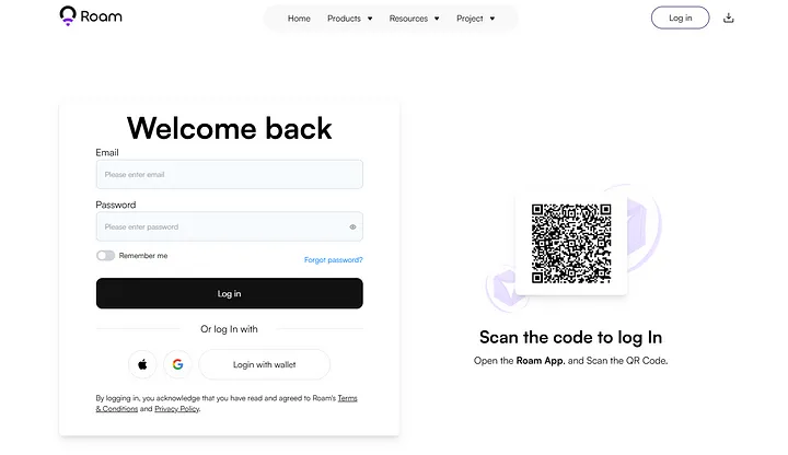 Step 1: Visit https://weroam.xyz/login and log in to your account by scanning the QR code with your Roam App or using your Roam App login credentials.