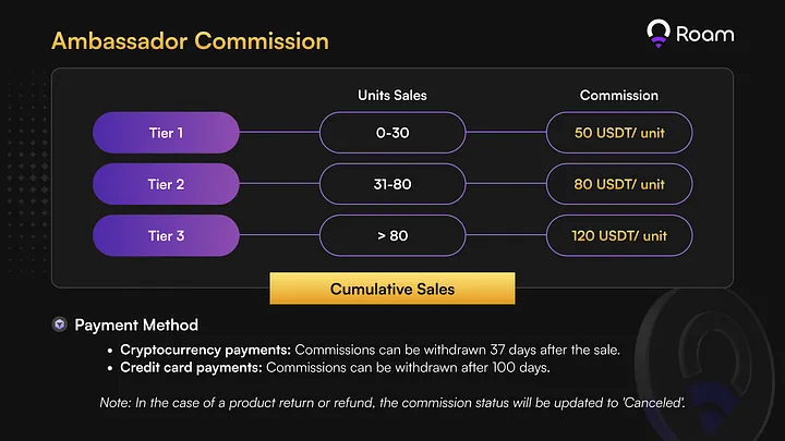 Tier 3 (More than 80 units sold): Ambassadors in this elite tier earn 120 USDT per unit sold, maximizing their earning potential.