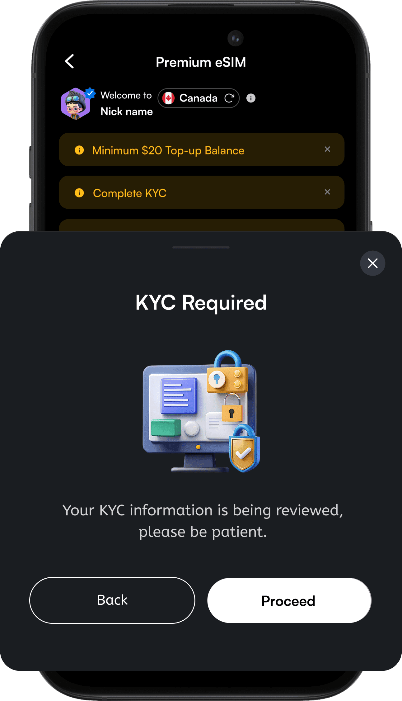 Protect your Roam phone number and account with a quick, one-time KYC step.